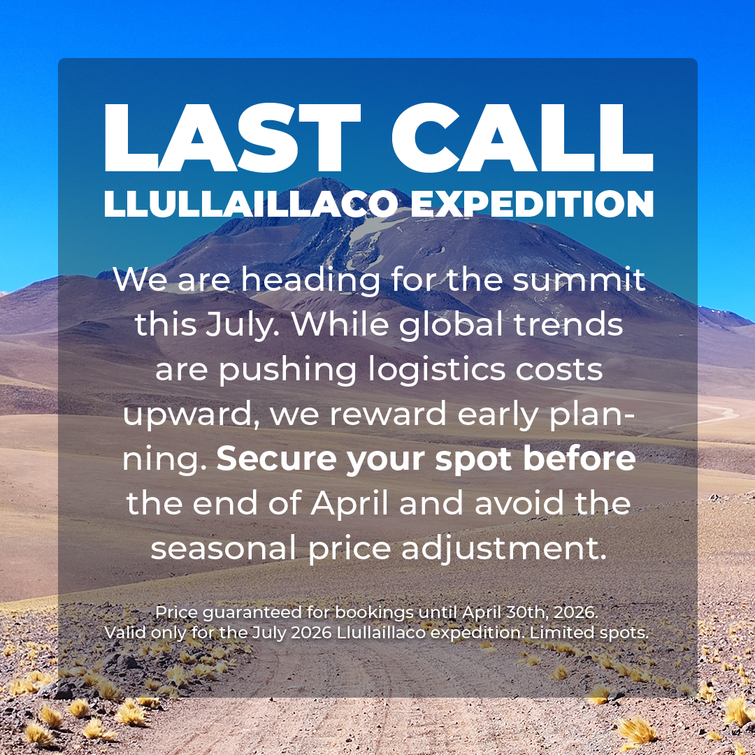 El volcán Llullaillaco es considerado el segundo volcán mas alto del planeta (6739m), después del Ojos del Salado (6893), es además la tercera cumbre mas alta de Chile y claramente un gran desafío. Recorremos el desierto mas árido del mundo (Atacama).